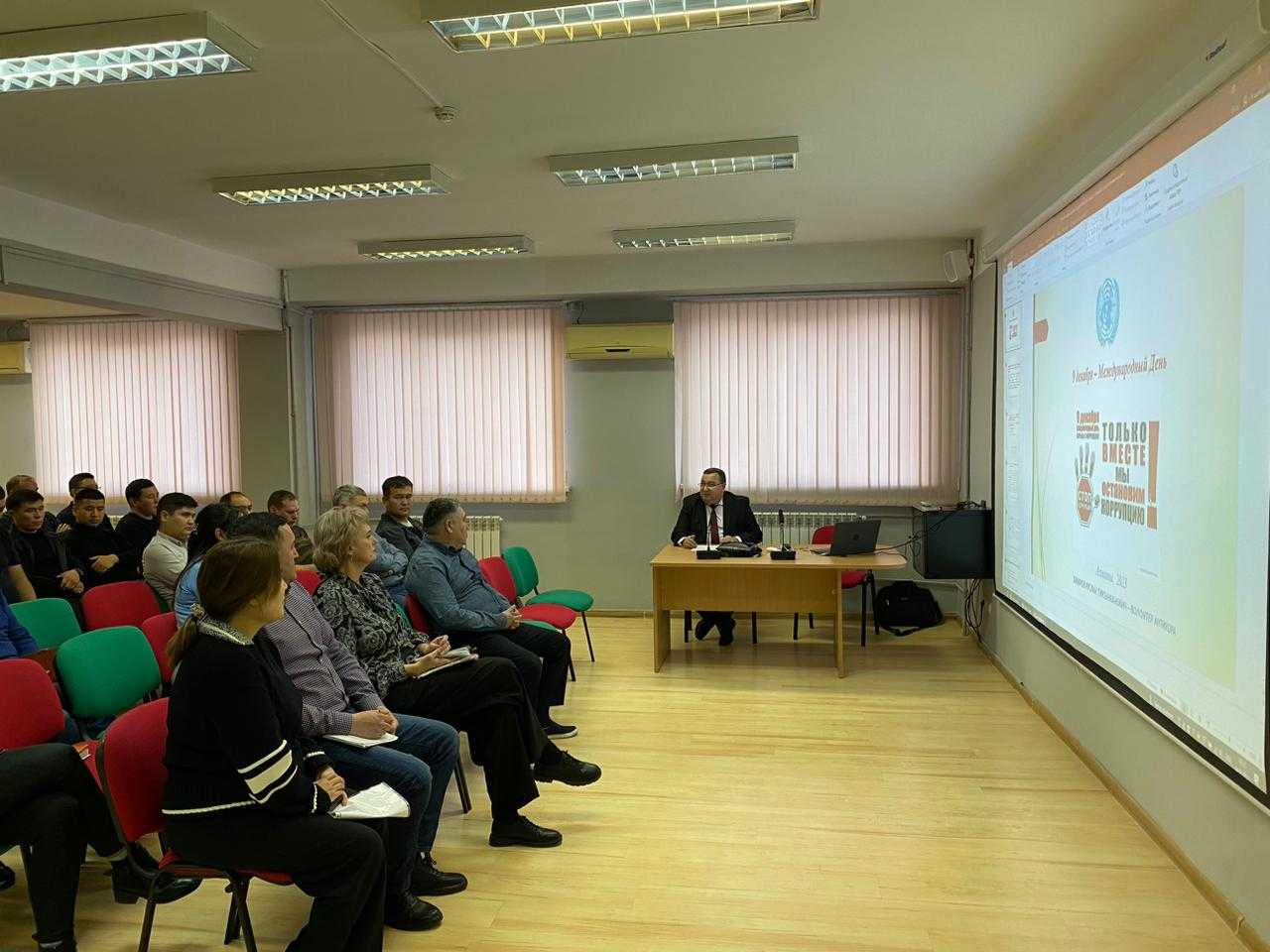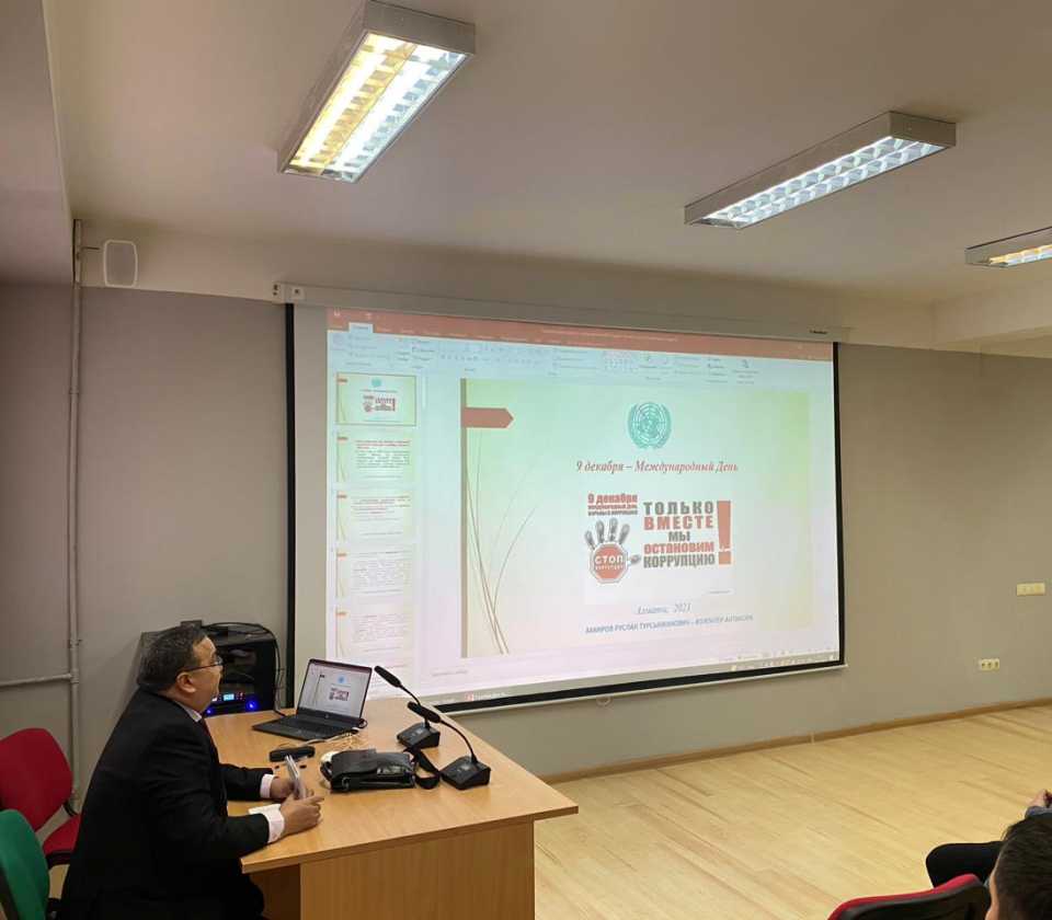 2023 жылдың 28 қарашасында «Қазақстан Республикасы Сыбайлас жемқорлыққа қарсы іс-қимыл агенттігінің (Сыбайлас жемқорлыққа қарсы қызмет) Алматы қаласы бойынша департаментінің» өкілдерімен бірлесіп, ҚР 2022-2026 жылдарға арналған сыбайлас жемқорлық саясаты, квазимемлекеттік сектор субъектілеріндегі мемлекеттік сатып алулар саласындағы сыбайлас жемқорлық тәуекелдері туралы Сыбайлас жемқорлыққа қарсы іс-қимыл тұжырымдамасы тақырыбында дәріс өткізілді.