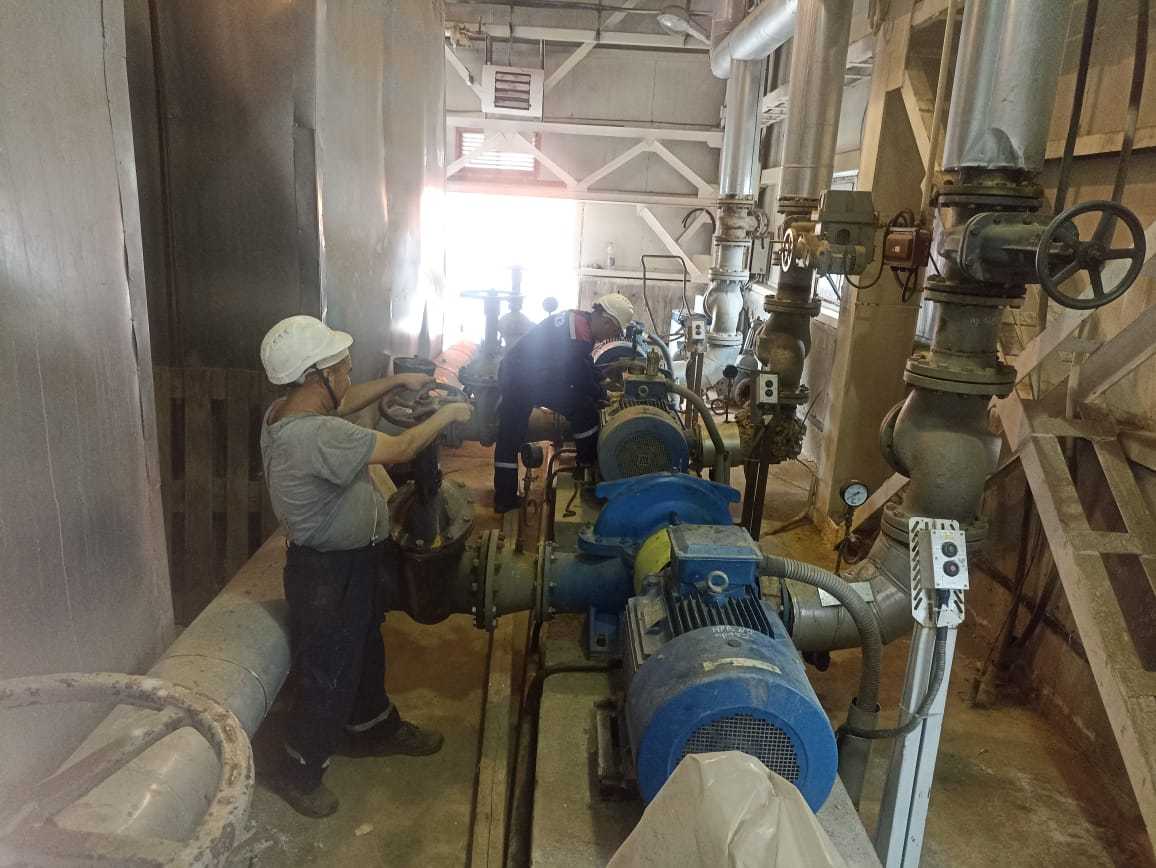 На сегодняшний день ремонтные работы основного и вспомогательного оборудования подходят к завершающему этапу. Произведены работы по очистке деаэраторной установки, обеспечивающий удаление агрессивных газов из состава воды, произведена замена запорных арматур, также произведена замена фильтрующих материалов для умягчения воды с целью избежания отложении внутрикотловых поверхностей. Произведен текущий ремонт всего электрооборудования котельной (силовых трансформаторов и высоковольтных вакуумных выключателей). Произведен осмотр аккумулирующих баков готовой воды, емкостей хранения аварийного топлива, выполнена их опрессовка давлением выше номинального.