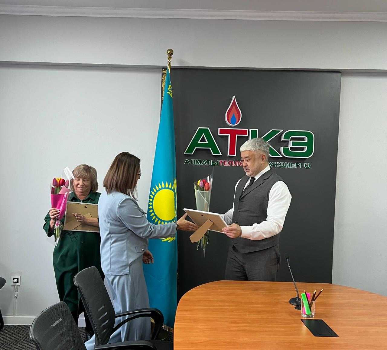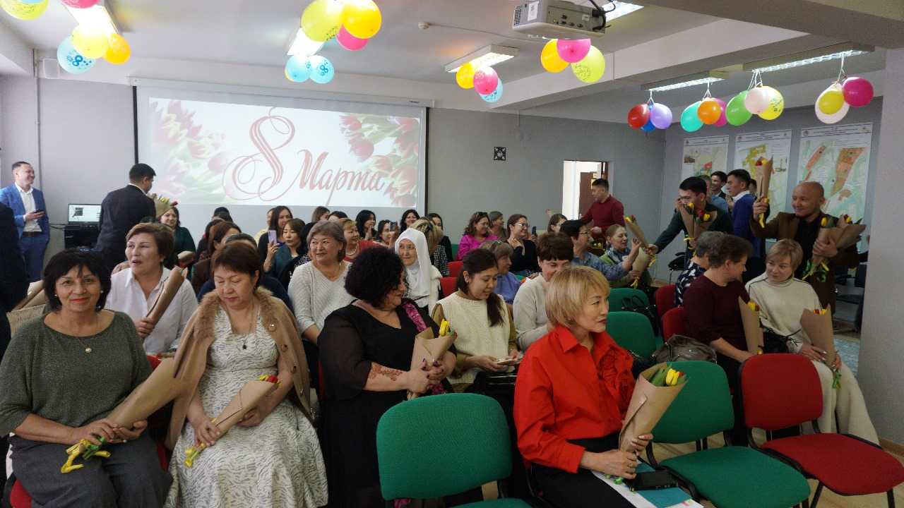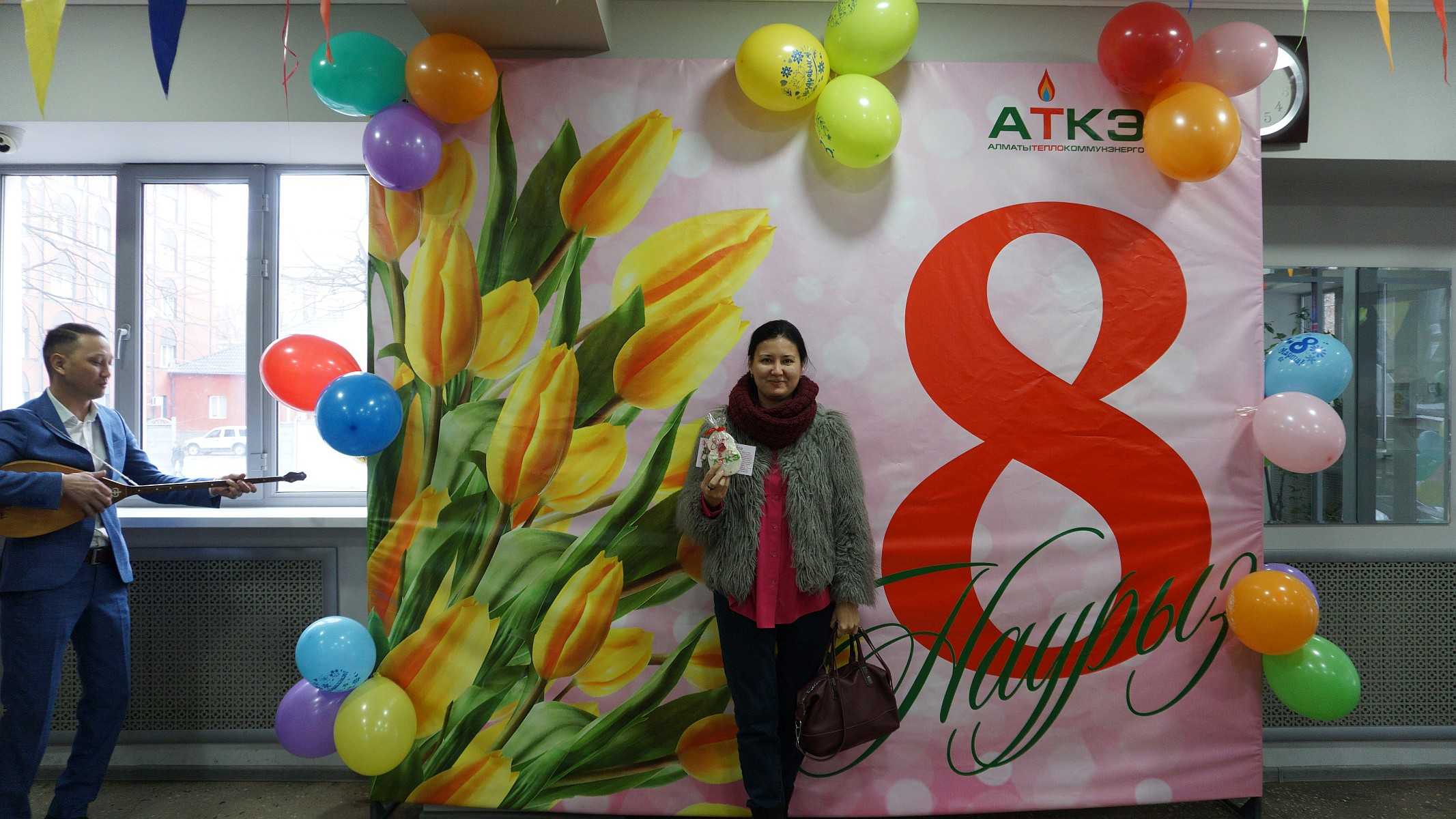 Поздравление прекрасной половины коллектива ТОО "Алматытеплокоммунэнерго" с Международным женским днём и вручение благодарственных писем от Акима города Алматы Досаева Е.А.