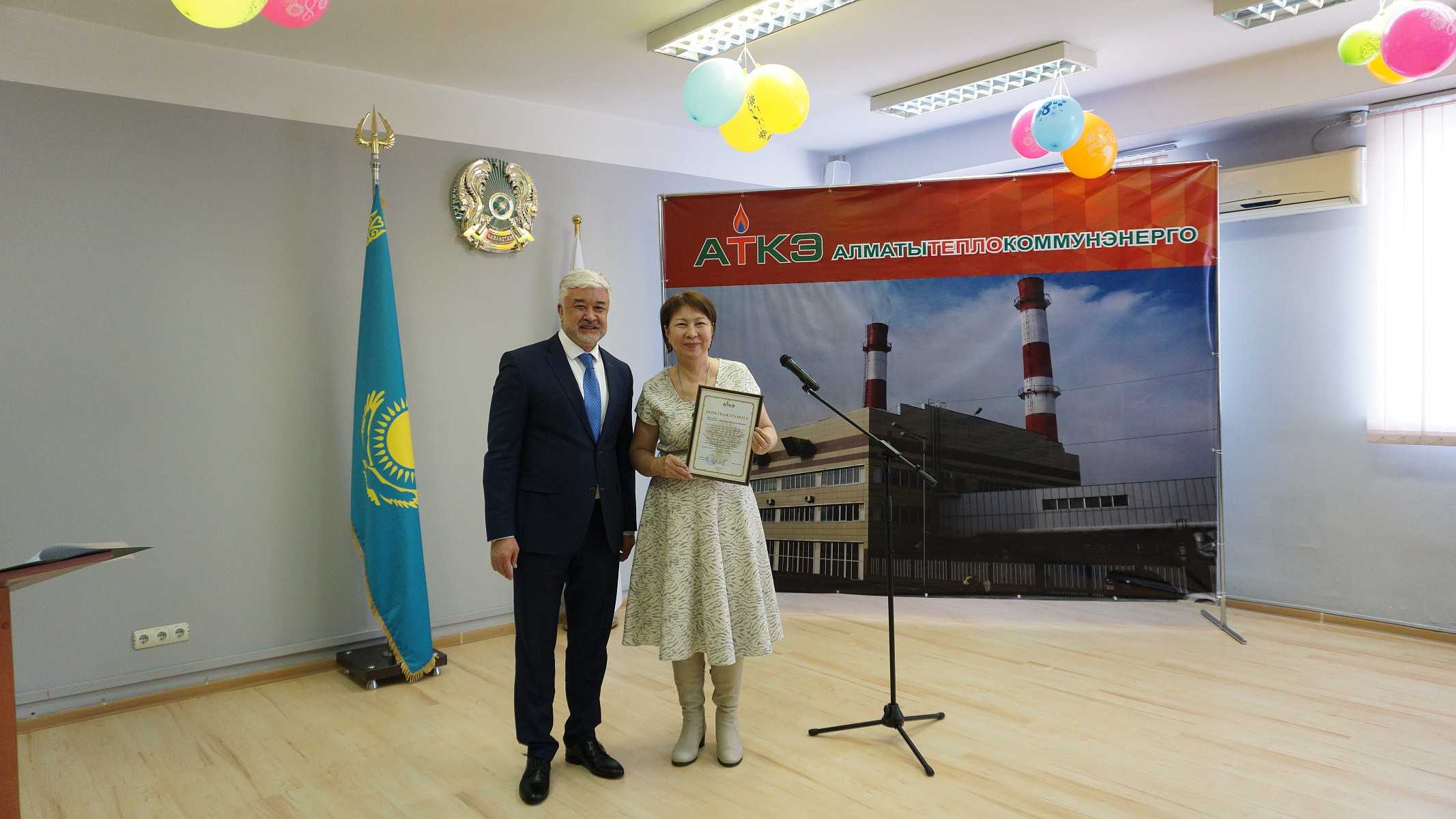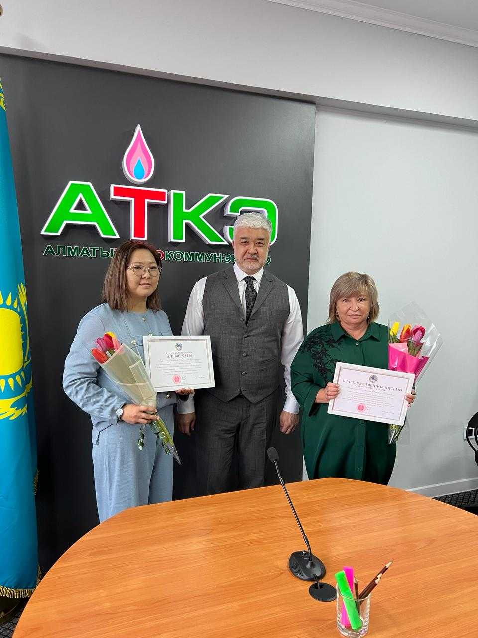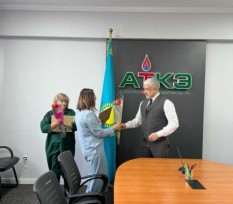 Поздравление прекрасной половины коллектива ТОО "Алматытеплокоммунэнерго" с Международным женским днём и вручение благодарственных писем от Акима города Алматы Досаева Е.А.